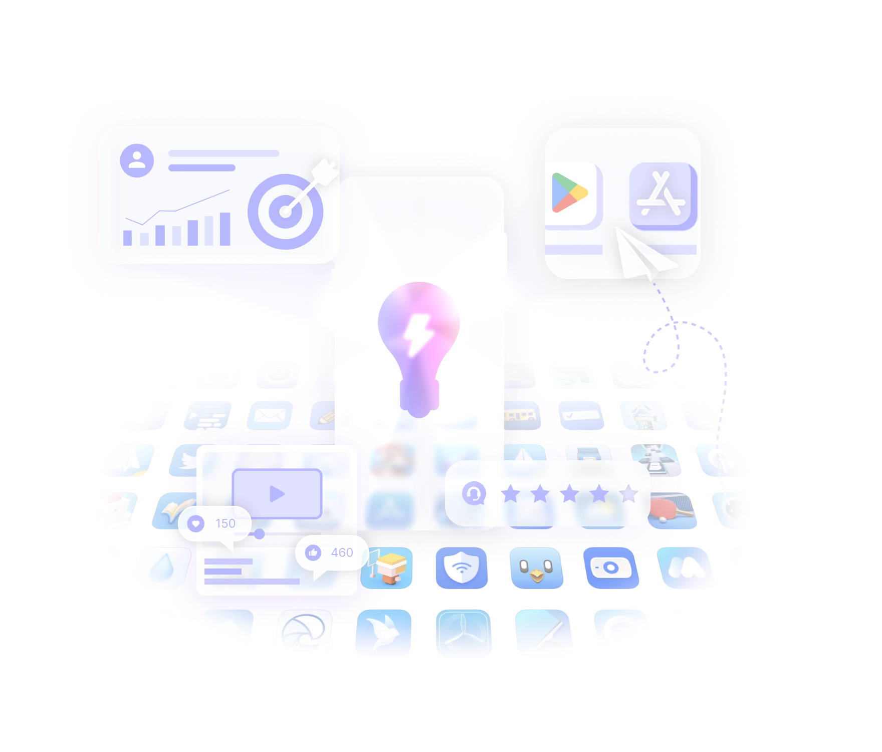 市場調査からグローバル配信まで、お客様のアプリケーションに全方位マーケティング・プロモーションソリューションを提供いたします。ターゲットユーザーに精確に到達し、投放戦略を最適化し、効率的成長を実現し、グローバル市場でお客様の製品を際立たせます。
